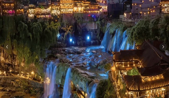 上午探访土司城,触摸湘西土家族的历史脉络,看古老建筑与民俗表演交织;午后前往“挂在瀑布上的千年古镇”芙蓉镇,瀑布轰鸣与石板街的宁静形成奇妙反差,品尝米豆腐与刘晓庆米酒,夜幕降临时,万家灯火倒映在瀑布上,宛如现实版《千与千寻》。